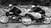 The growth of 50cc racing from 1955, when race speeds were under 50 m.p.h., to the Suzuki's 75 m.p.h. Manx laps in 1962 and a look at the men, and women who ride them