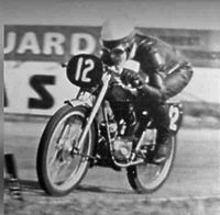 During 1960 one of my spies who had a close watch on the "opposition" kept mentioning D.A. Simmonds as a man to watch. The following season I could not help but watch him, for increasingly often on the track he seemed to be the man in front of me. At each appearance his performance improved and it was during 1961 that he fitted his Itom engine into a frame designed and constructed by his brother Michael and himself. Handling was improved considerably, and while testing at Brands many a rider of bigger machinery was shaken when passed on a difficult Dave Simmonds's screaming fifty.