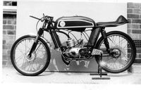 The Italian Motoms arrived in Britain in 1961 with every intention of upsetting the supremacy of the privately owned Itom two-strokes which had been winning races since around 1956 But they achieved only moderate success, and their best performance "the writer believes" was a runaway win at Silverstone, where the rider was Peter Inchley. The spine frame carried is four-stroke engine and gear box unit (with four or five speeds). Top speed: around 80 m.p.h.